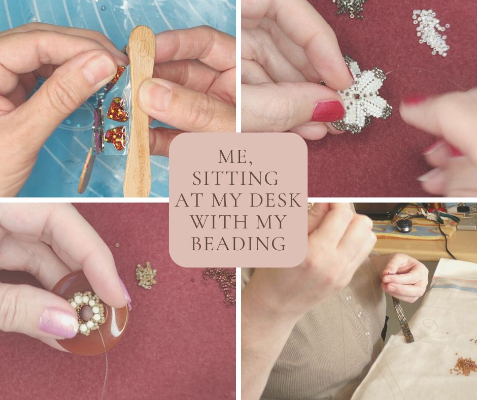On the other hand, imagine me sitting at my desk with a needle, a thin thread, and thousands of tiny glass beads. First, I pick up a tiny bead and weave it. Then, I reach for the second bead to lock it in place. Finally, I repeat this slow motion until I reach the 500th bead.