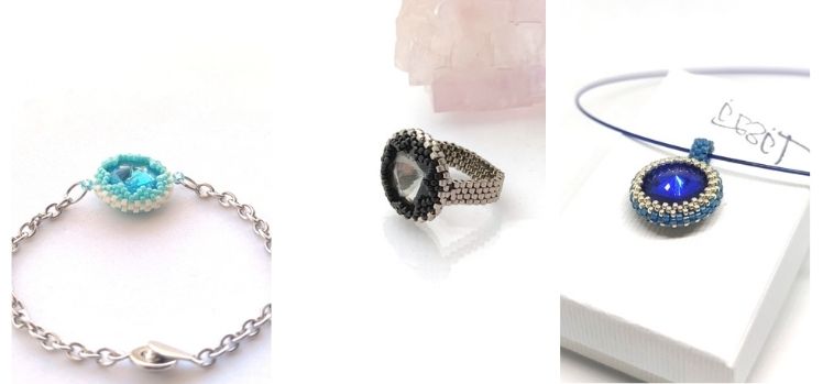 You can find pendants, bracelets, and rings.